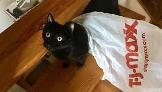 All of the kit-tays seem to love getting into bags, boxes and whatnot. Getting into bags, though, often leaves them with a dilemma. Like, how to get out: